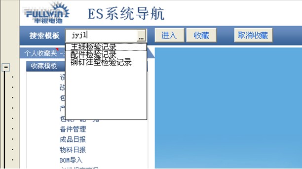 ES系统导航(模板)用于快速搜索和访问所有模板,类似系统本身的快速填报工具栏。