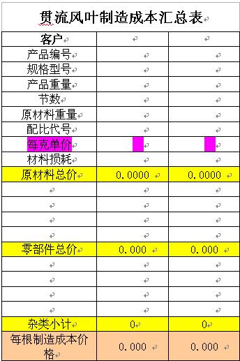 贯流风叶制造成本汇总表表间公式: