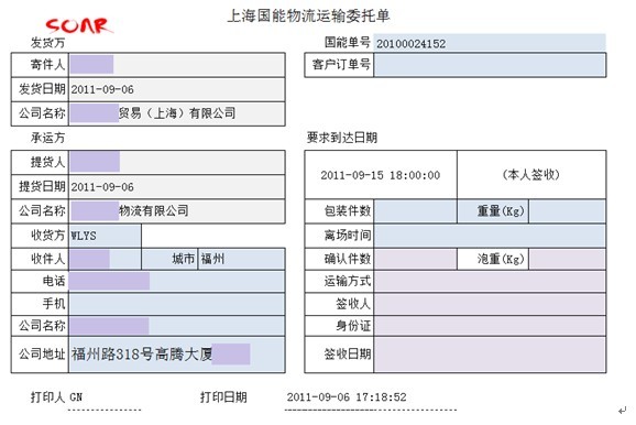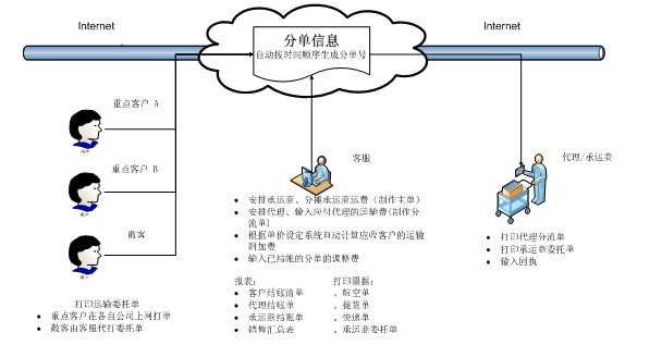 重点客户可以登录系统,自行输入运输委托单,常用的发货地址和客户地址可以保存在系统里面,输入时通过拼音码调用,散客可以由客户服务人员代为制作运输委托单。