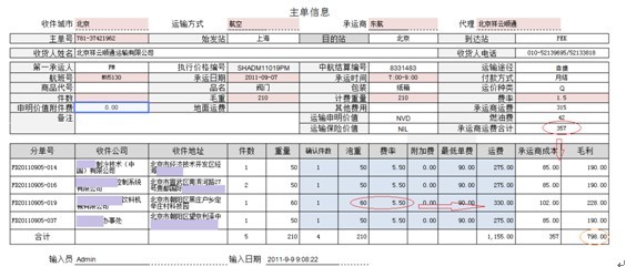 所有的运输委托单汇总成运输分单,由物流公司客服人员统一安排调度,采用适当的运输方式:空运、海运、公路、铁路、水运、快递,选择适当的承运商和代理协助送货,系统根据和客户的合同单价以及承运商、代理的协议费率可以分摊承运商运费并核算出每笔分单的毛利,客服人员还可以对每笔分单的收费进行调整: