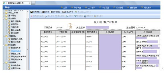 月底系统生成详细的客户对帐单、承运商对帐单、代理对帐单、销售汇总表等