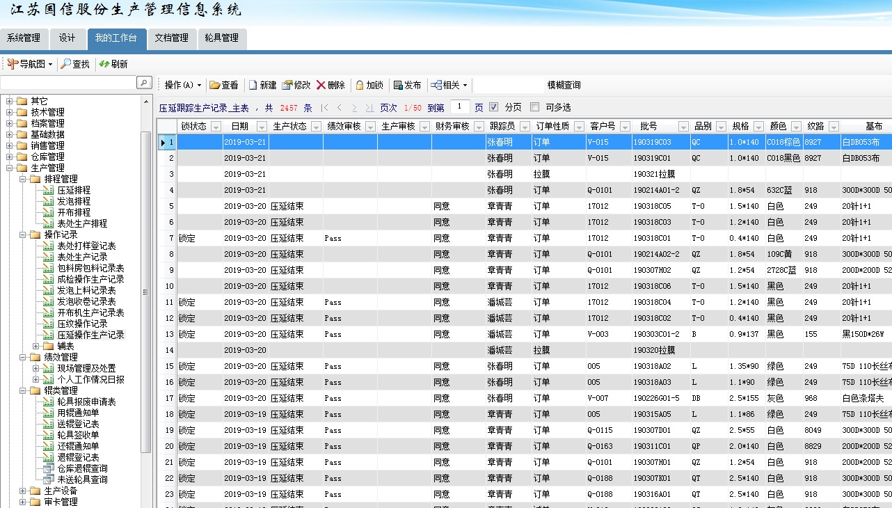 江苏国信复合材料科技股份有限公司,专业生产各类人造革、合成革,为全国中小企业股份转让系统(新三板)上市企业,公司质量方针:数据化、标准化、规范化, 公司所有部门业务、采购、技术、生产、品管、设备、仓储、人事及后勤、财务及数据分析等必须要求借助平台有序有组织运行,在2016年开始使用用友U8财务管理软件并与其协作开发生产管理信息系统,俗称ERP,开发两年,由于软件商对生工艺、需求不熟悉,很难运用于生产并发挥作用,自从2018年公司使用了勤哲EXCEL服务器,才真正找对了路,从此不再依赖所谓专业软件公司,我们可以自行设计模板、流程,搭建了适合自己的信息化管理系统,大大提高了各部门工作效率,降低了成本,在此表示感谢勤哲,现在把我使用勤哲软件的经验与大家分享。