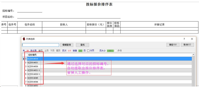 用于快速制作和打印开标现场时使用的《发票领取表》
