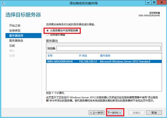 5.选择“从服务器池中选择服务器”,选中本地服务器,点击“下一步”