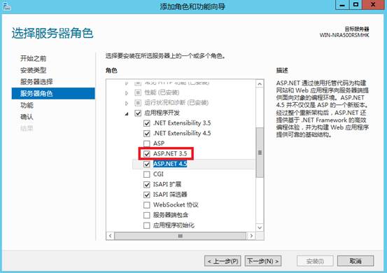 展开“应用程序开发”,选择“ASP.NET3.5”,点击“下一步”