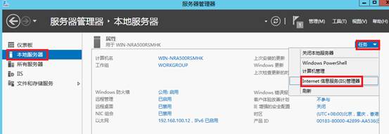 14.点击“本地服务器-任务”,点击“Internet信息服务(IIS)管理器”