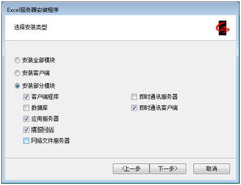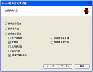 选择安装“客户端程序”、“应用服务器”、“填报网站”和“即时通讯客户端”: