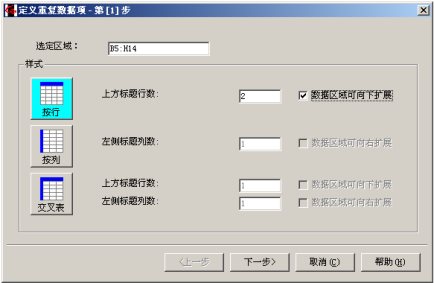 - 选中 B5:H14 ,定义重复数据项。注意第一步的上方标题行数要输入 2 。