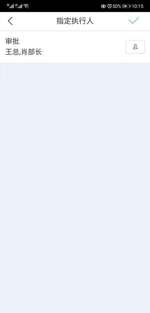 6.最终选择的用户则显示在审批执行人中。点击【√】完成订单填报。