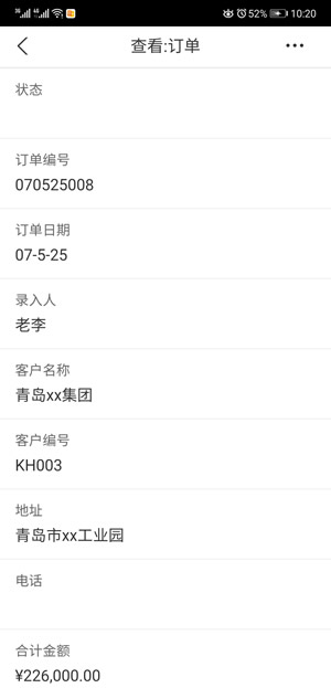3.打开订单表单,此页面的信息不可编辑修改,点击订单明细可逐条查看对应明细内容。