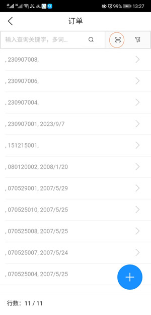 下面以订单的清单列表例来说明如何通过扫码查找表单: