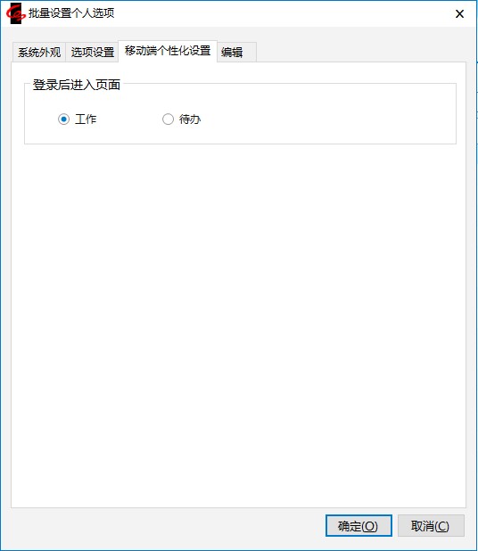 2.选中【移动端个性化设置】选项卡,选择登录后进入的页面,点击【确定】。
