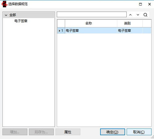 2)点击对应的【数据规范】浏览按钮,选择“电子签章”数据规范。