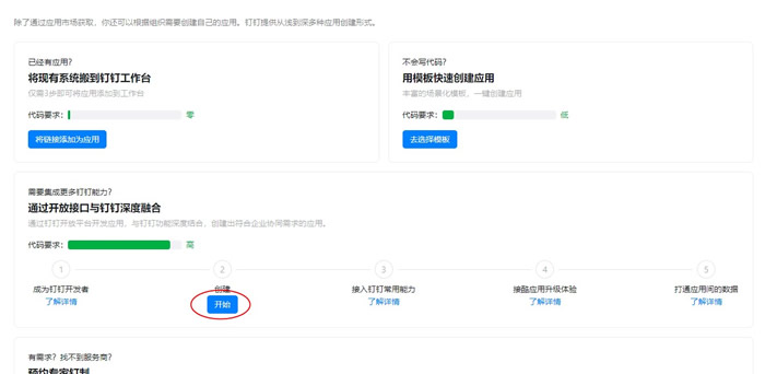 1.登录钉钉管理界面,选中【工作台】-【应用管理】点击【创建应用】。