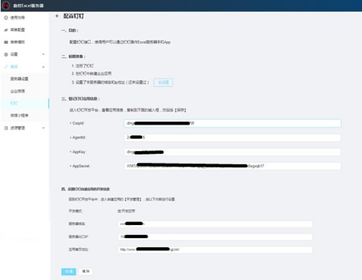 在钉钉管理界面上创建与Excel服务器帐套对应的应用。