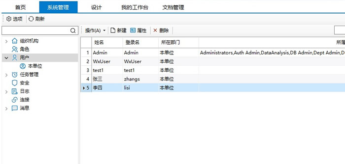 1. 登录应用系统,找到已存在于钉钉通讯录当中的用户“李四”。